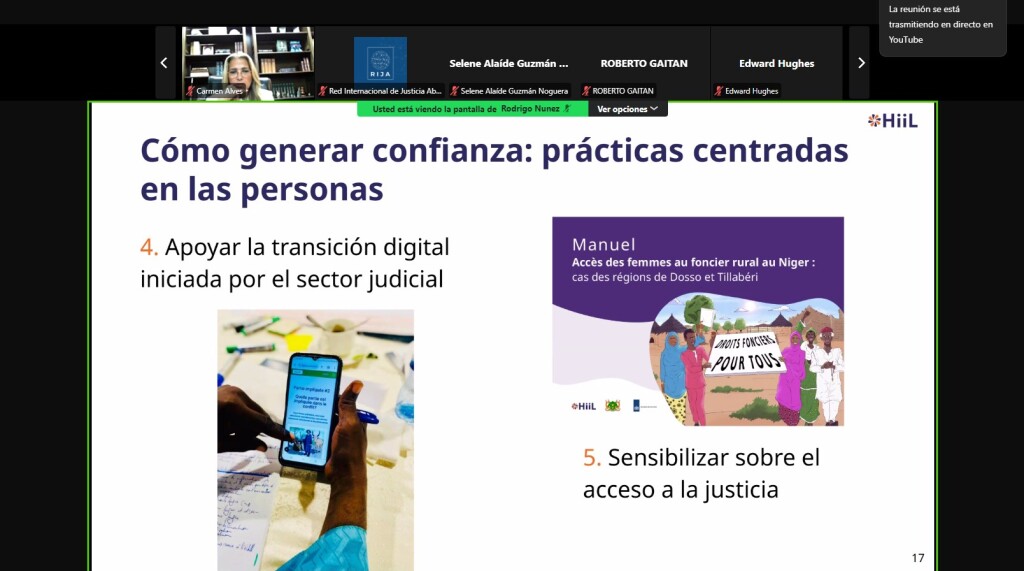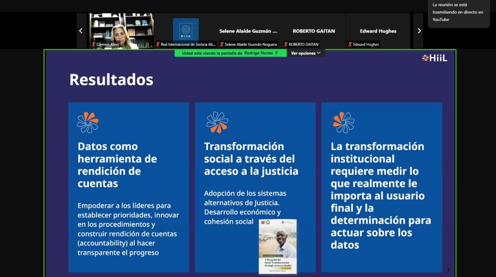 Los casos concretos fueron presentados por las personas especialistas e investigadoras de la organización HiiL, Emile Dajer, Rodrigo Núñez y Simón Díaz, quienes hicieron énfasis en las metodologías seguidas para la transformación de sistemas judiciales basadas en la experiencia de la persona usuaria, sus necesidades, participación activa y expectativas, generando fortalecimiento de la confianza y la transparencia institucional, además de empoderamiento ciudadano.