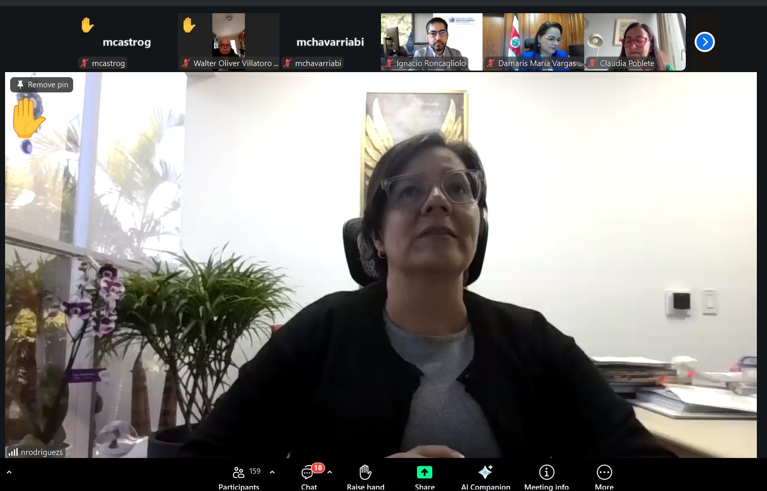 La sesión contó con las exposiciones de la magistrada y vicepresidenta de la Corte Suprema de Justicia de Costa Rica, Damaris Vargas Vásquez, y de la académica y perita forense chilena, Claudia Poblete Olmedo, quienes compartieron sus conocimientos y experiencias con las personas participantes.